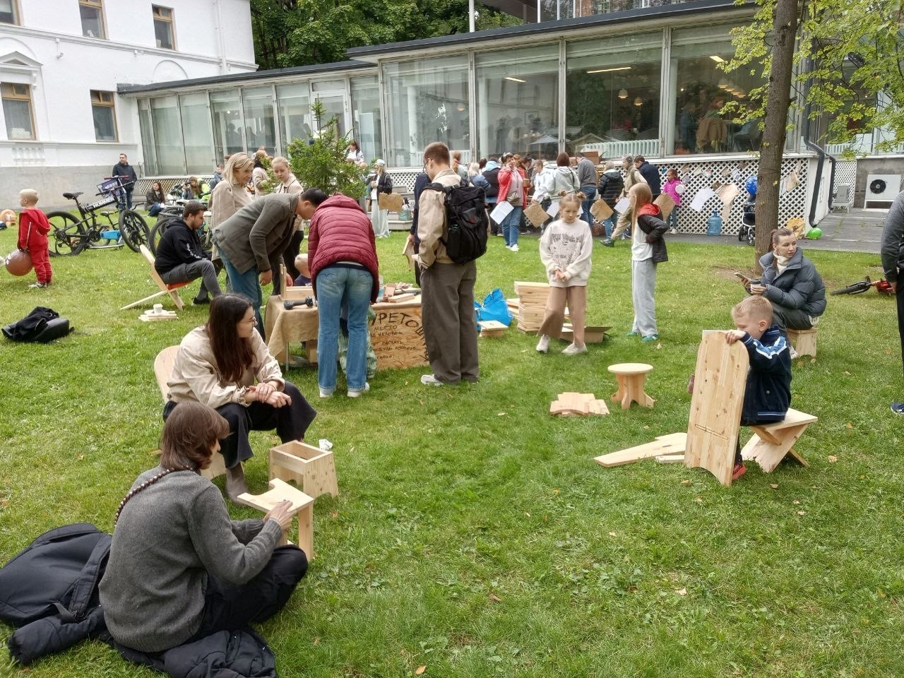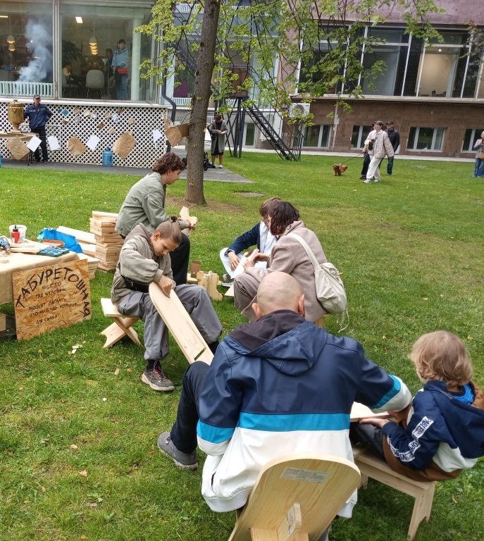 Все потому, что в последние теплые деньки в доме творчества в Переделкино нам удалось провести «Самый обычный, очень длинный день на даче». Мероприятие, которое планировалось как мастер-класс, стало похоже на мебельную фабрику под открытым небом.